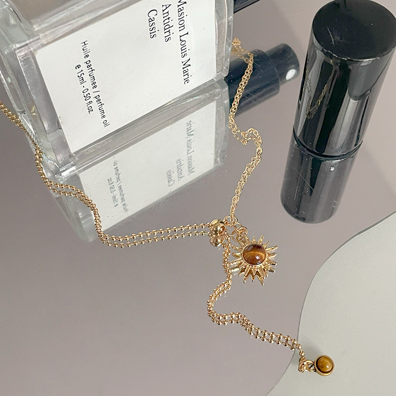 華やかな太陽モチーフが胸元を彩る金ネックレスです。