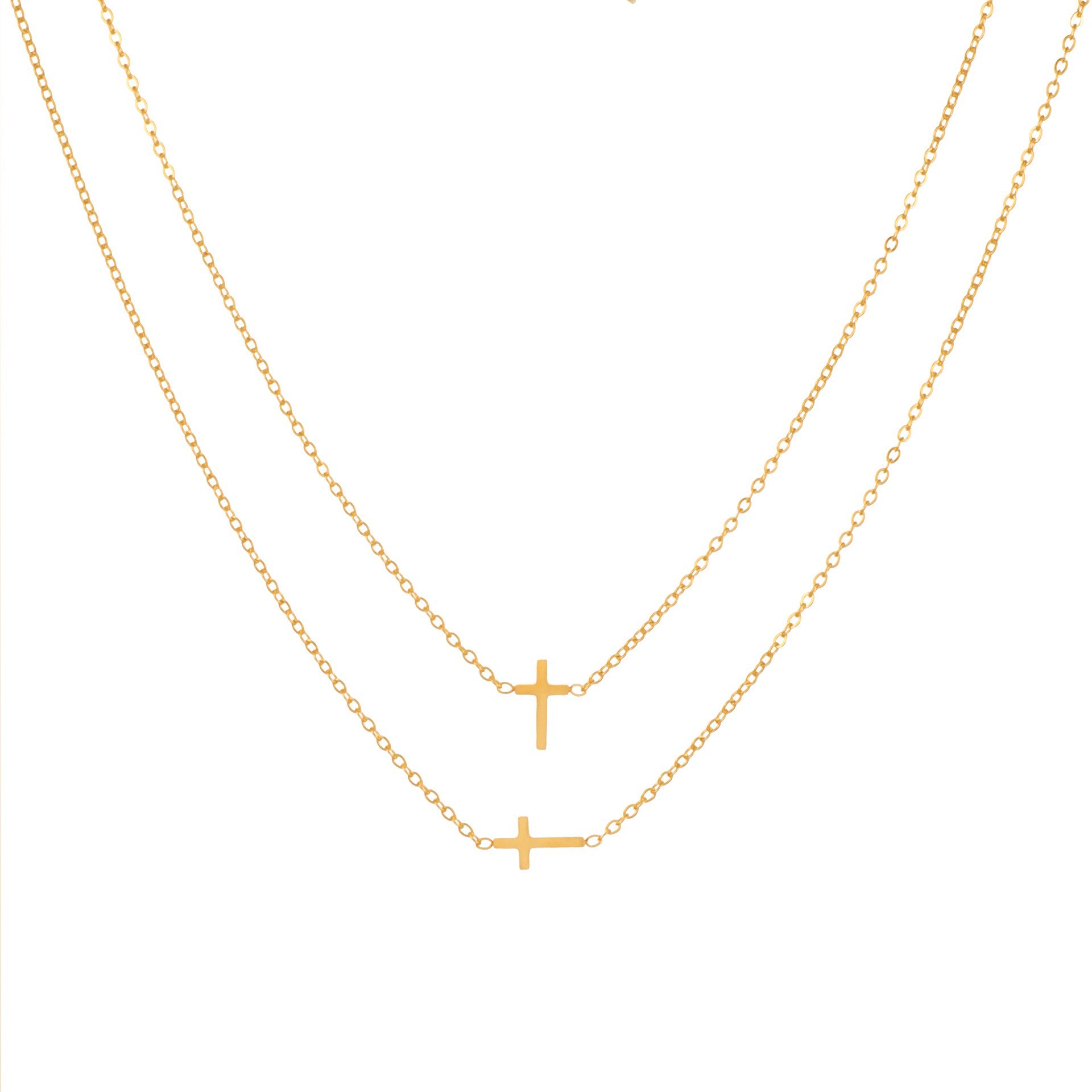 小ぶりな十字架モチーフが上品に輝く、レディース向けの華奢な金ネックレスです。