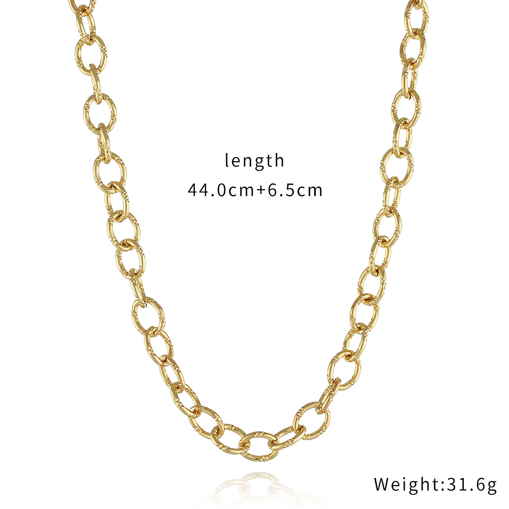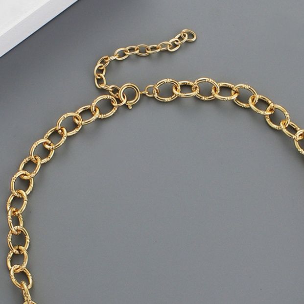 存在感のある太めのチェーンデザインが特徴的な金 ネックレスです。 一つ一つの輪が立体的に加工されており、光を受けて美しく輝きます。 レディースアクセサリーとして、シンプルな装いに華やかさをプラスしてくれる一品です。 カジュアルからきれいめスタイルまで幅広く活躍し、首元を印象的に演出します。 長さ調節可能なアジャスター付きで使いやすさも抜群です。