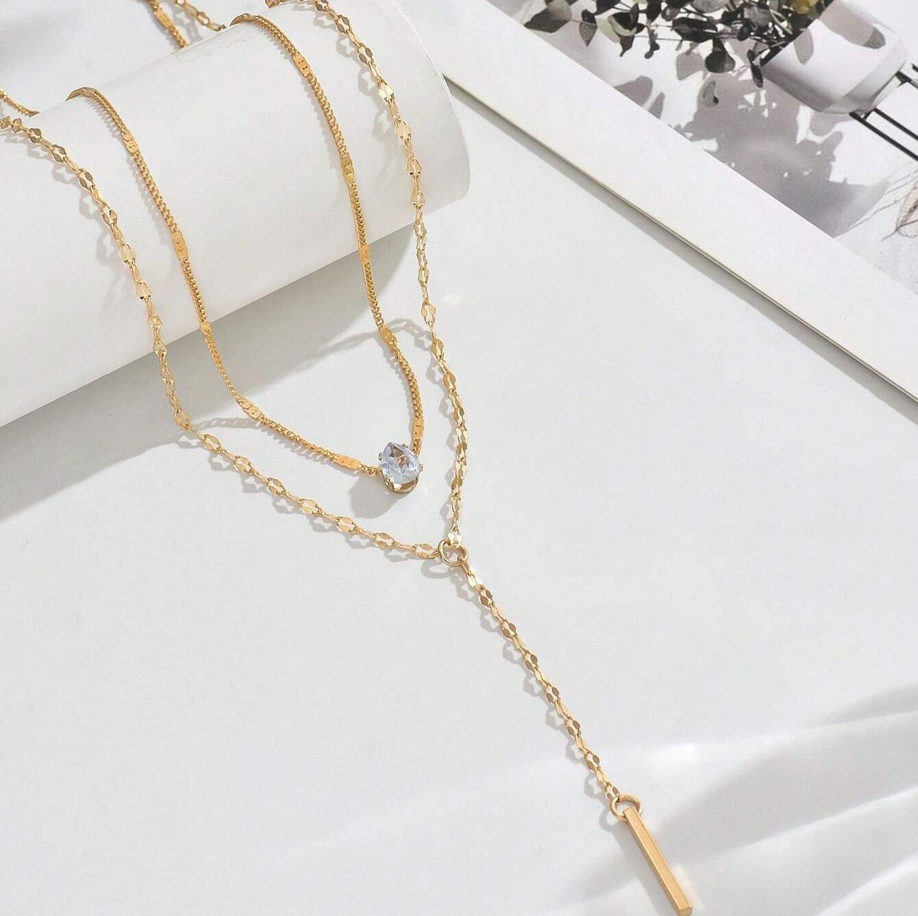 異なる長さのチェーンが立体的な美しさを生み出し、シンプルな装いにも華やかさをプラスします。
