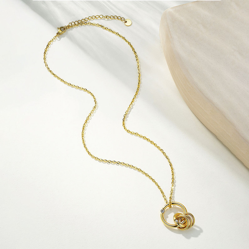 大人かわいい雰囲気の金 ネックレスが登場しました。 錆びにくいステンレス製で汗をかいても安心してお使いいただけます。 パールと重なるリングのデザインが上品な印象を演出し、友達やご家族への贈り物としても最適です。